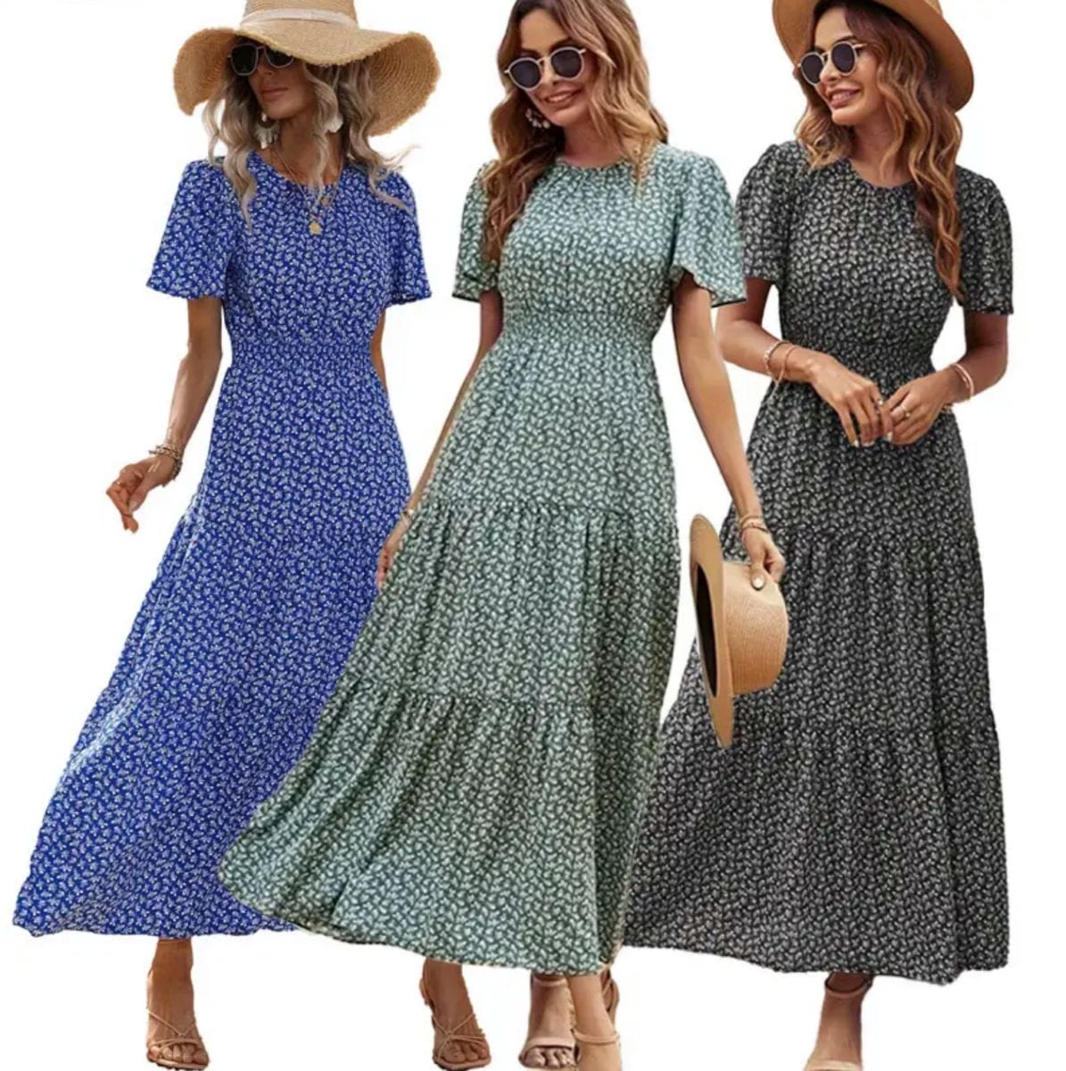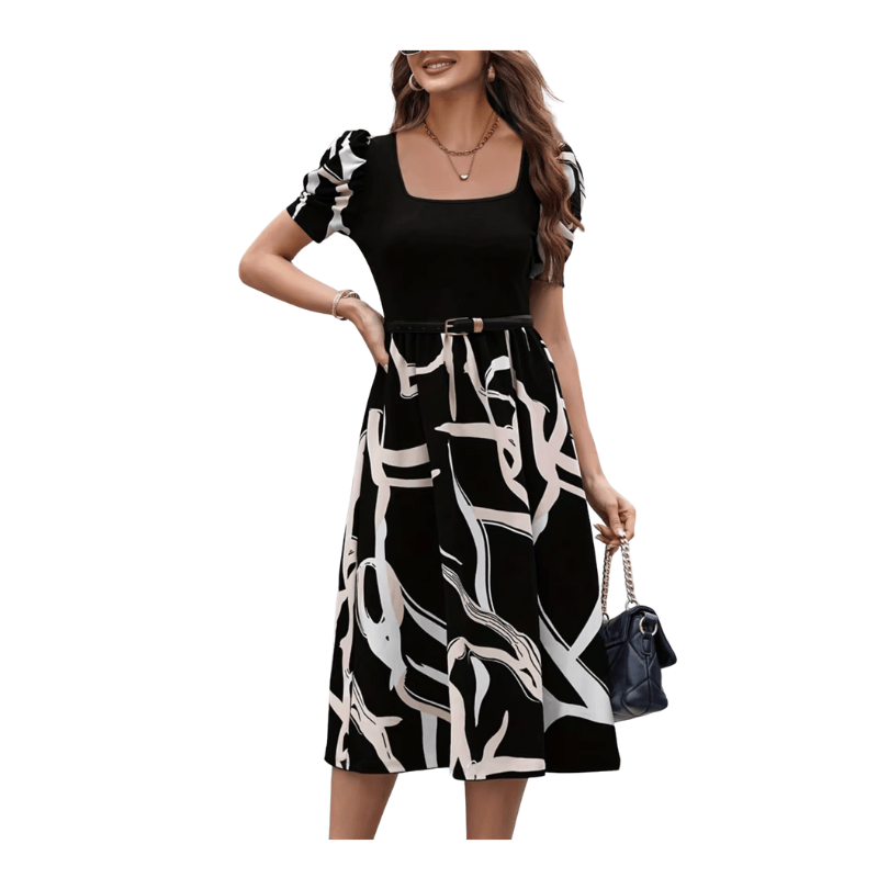 Retro Puff Sleeve Midi Dress – Elegant Vacation Style