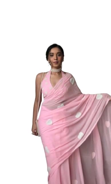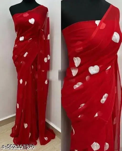 Red Georgette Saree with Heart Woven Pattern – Wedding Wear