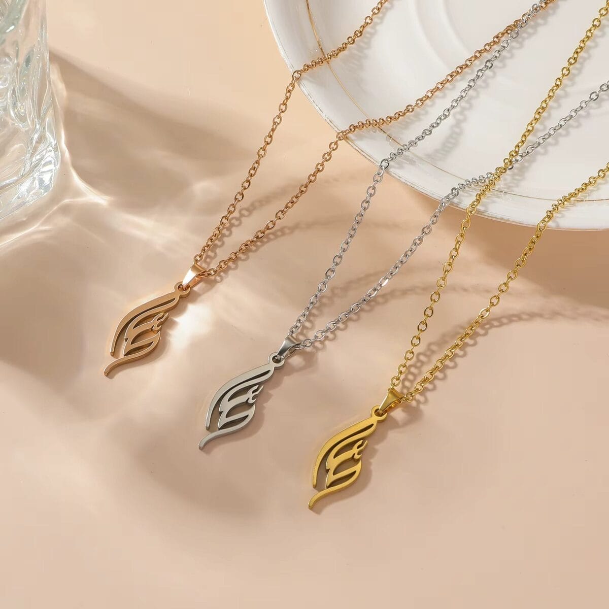 Stainless Steel Script Art Pendant Necklace with Link Chain