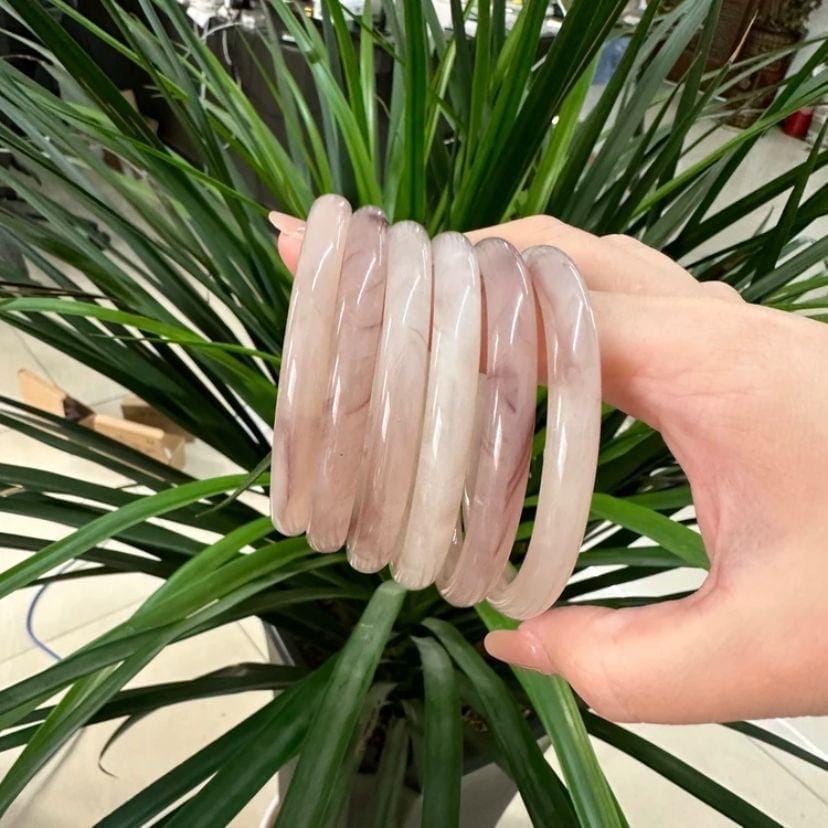 Elegant Jade Stone Bangle Bracelet Classic Round Bangle Jewelry for Women (Set of 2)