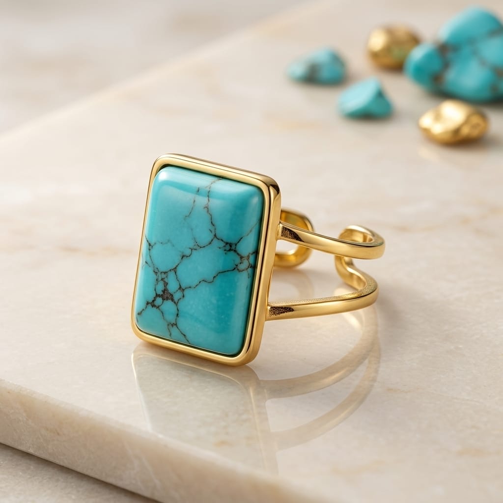Premium Turquoise Stone Adjustable Ring Gold Plated Statement Ring for Women Elegant Minimal Jewelry