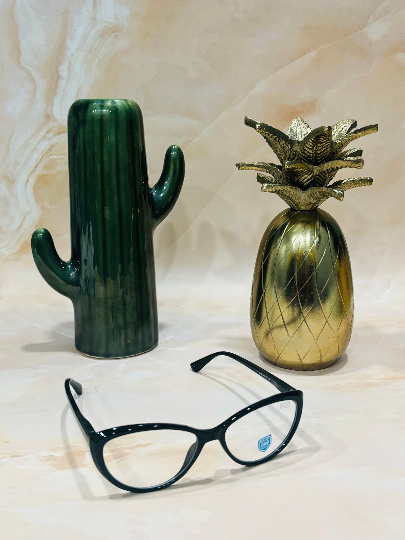 Black frame, green arms, cateye sunglasses