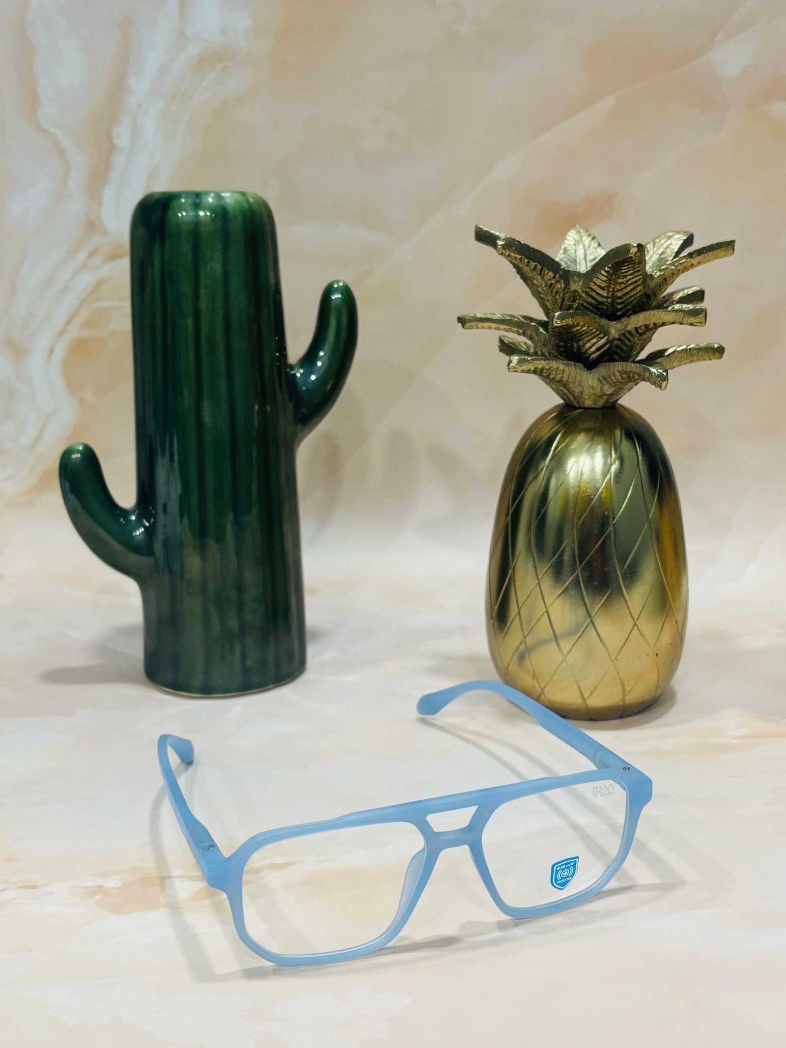 Square, light blue frame, blue light blocking lens, funky