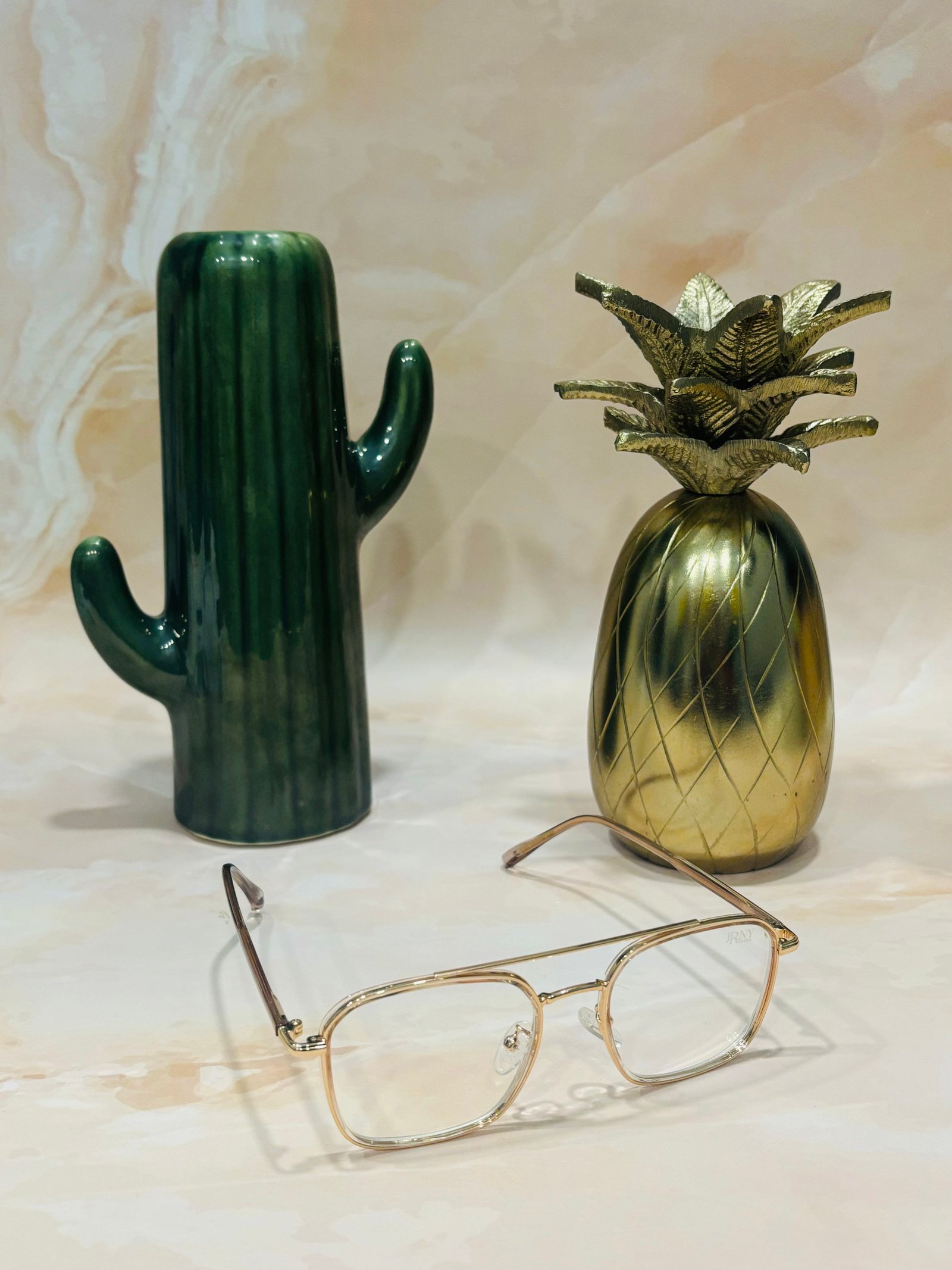 Square, golden frame, blue light blocking lens