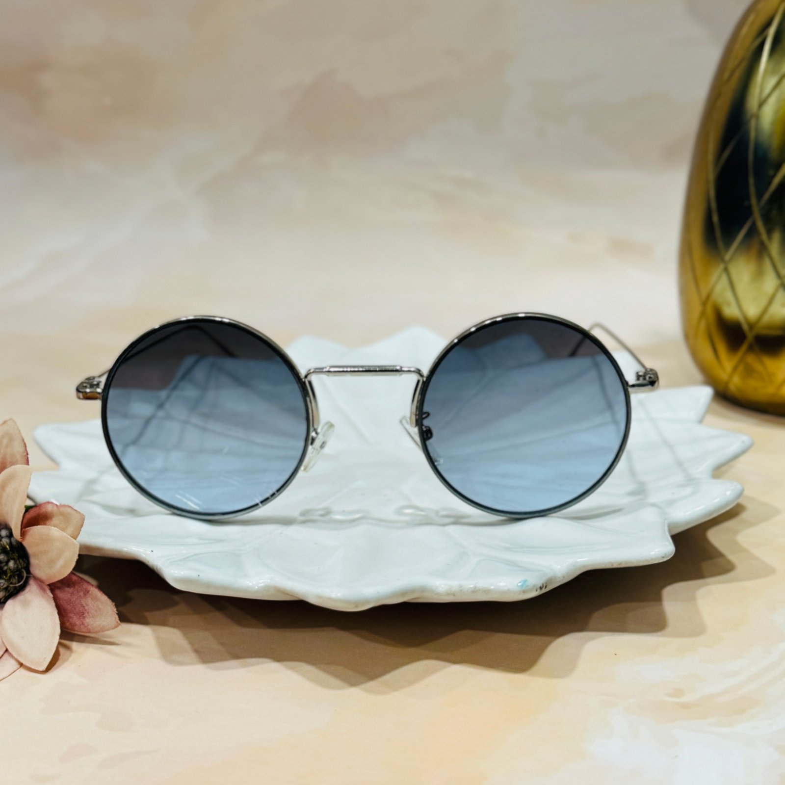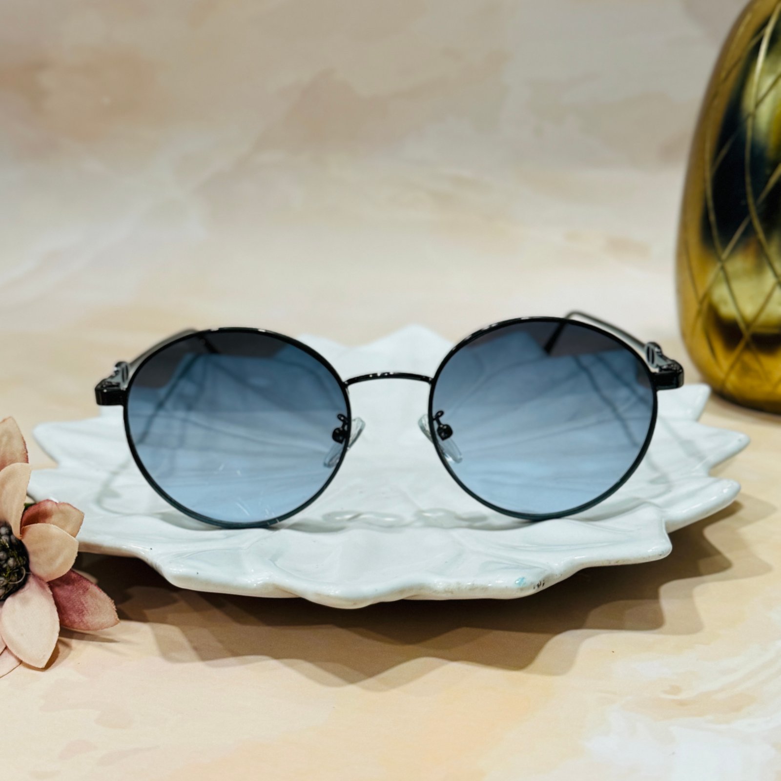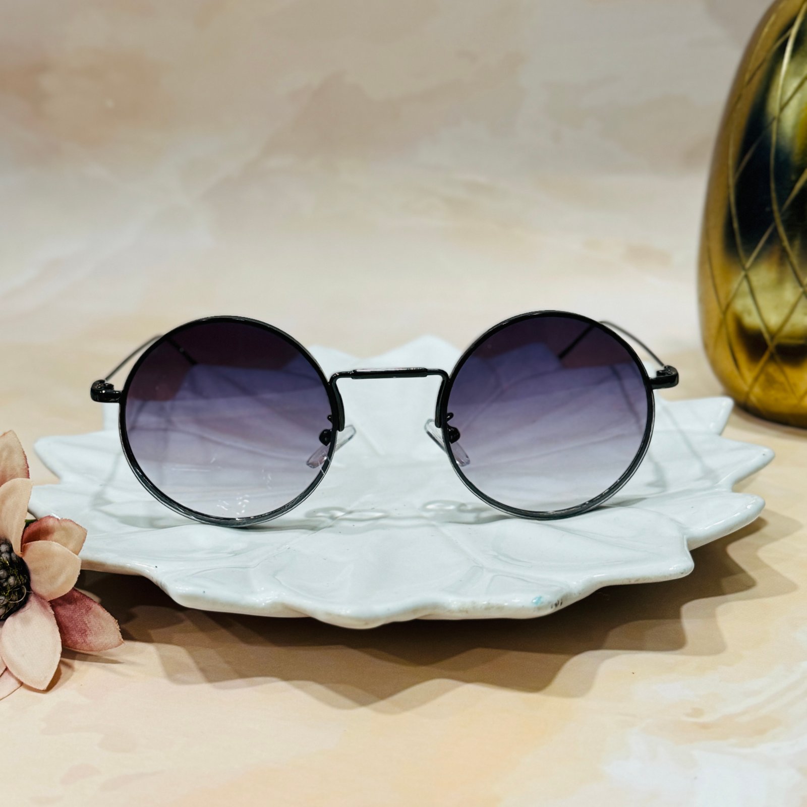 Round, black lens, luxury sunglasses