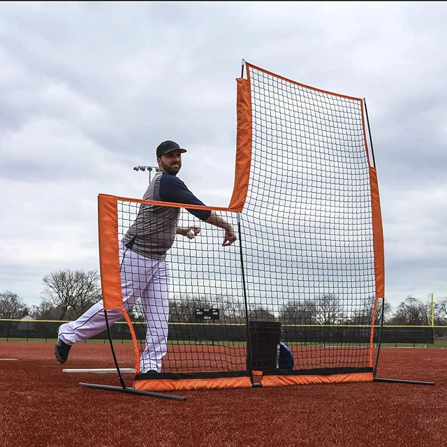 7 X 7 Ft Portable Pitcher’s L-Screen – Baseball/Softball Pitching Net, Baseball Training Equipment (US Stock)