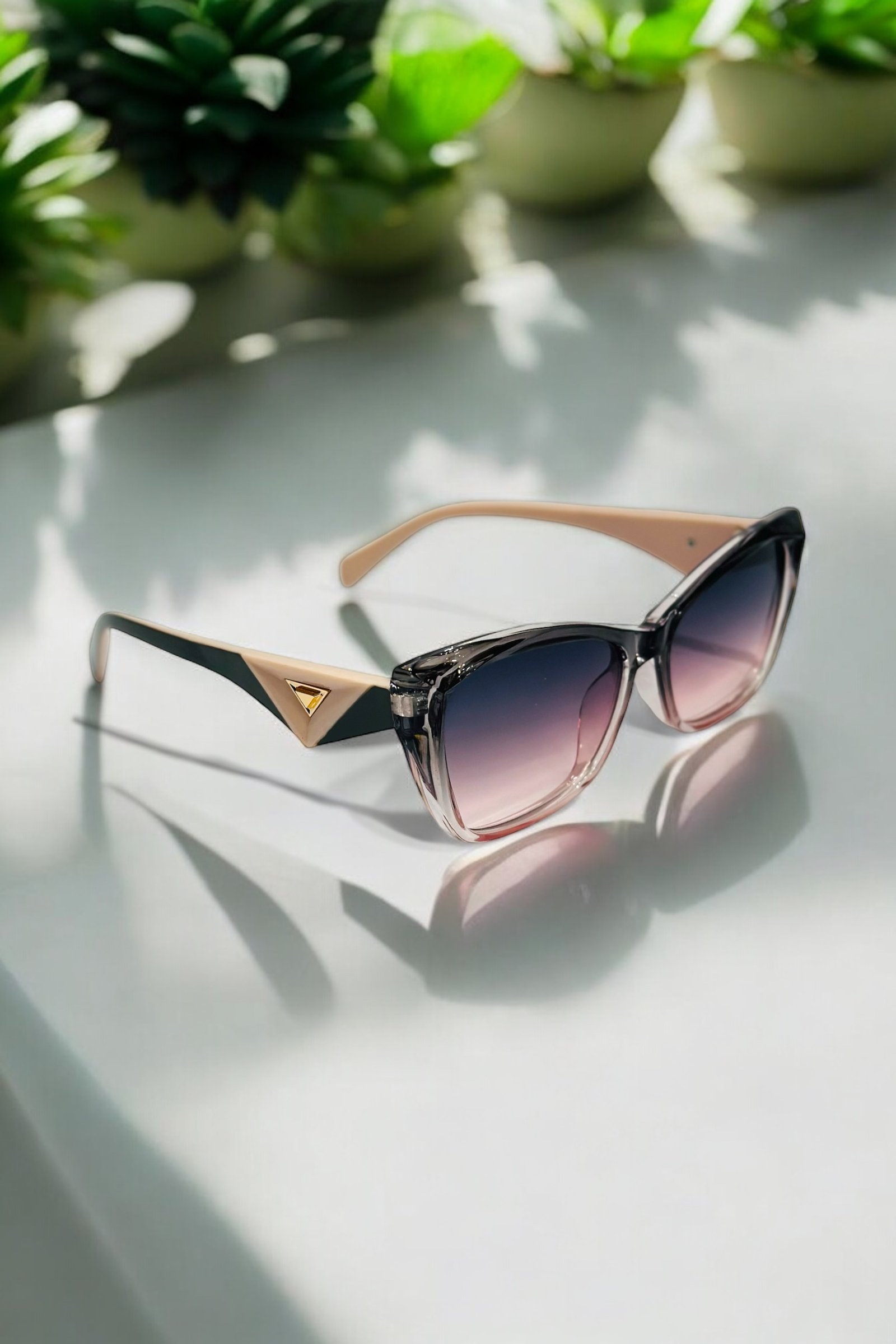 Gradient black-pink, light weight, cateye sunglasses