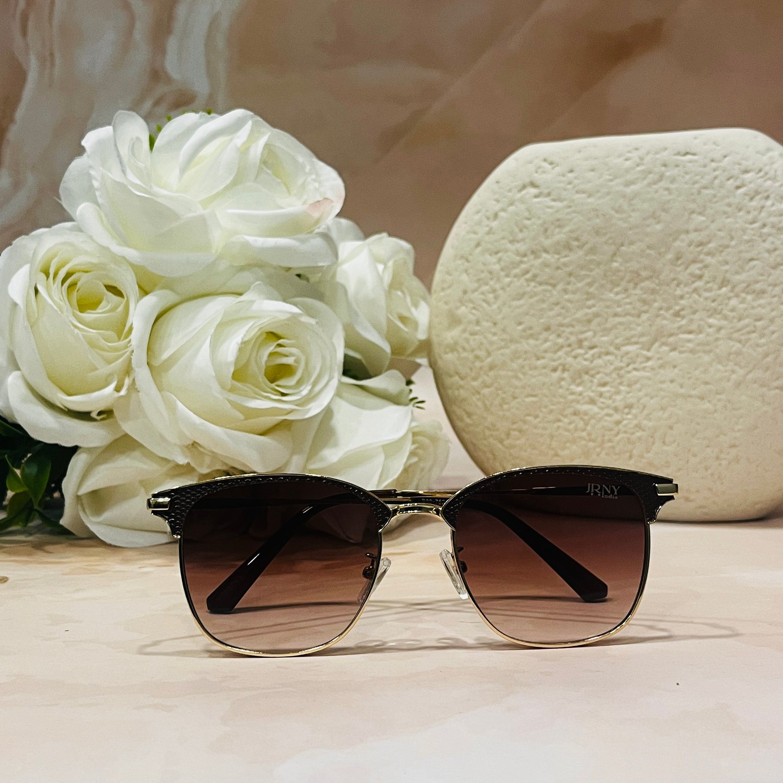 Golden frame, brown lens, light weight, cateye sunglasses