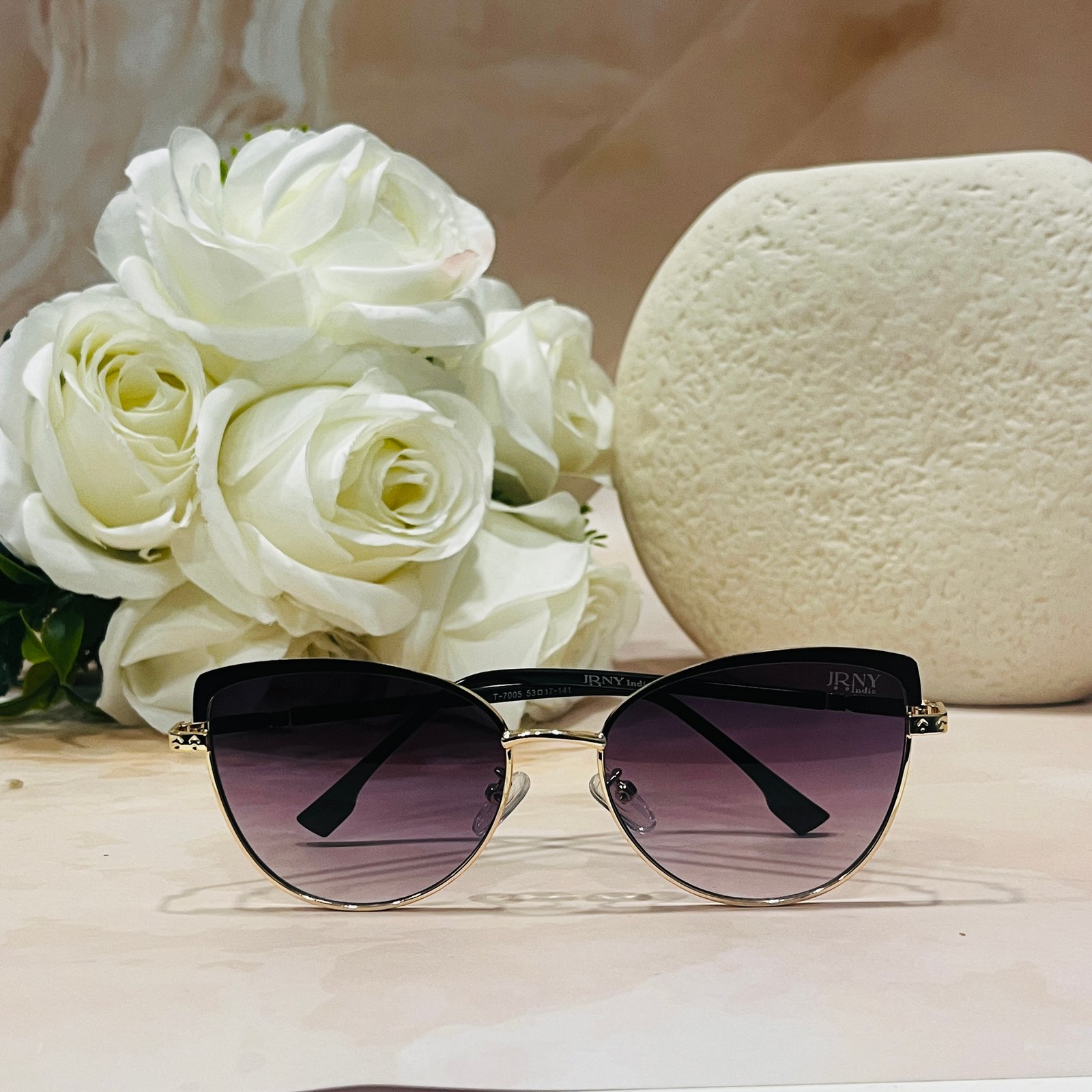 Golden frame, purple lens, light weight, cateye sunglasses