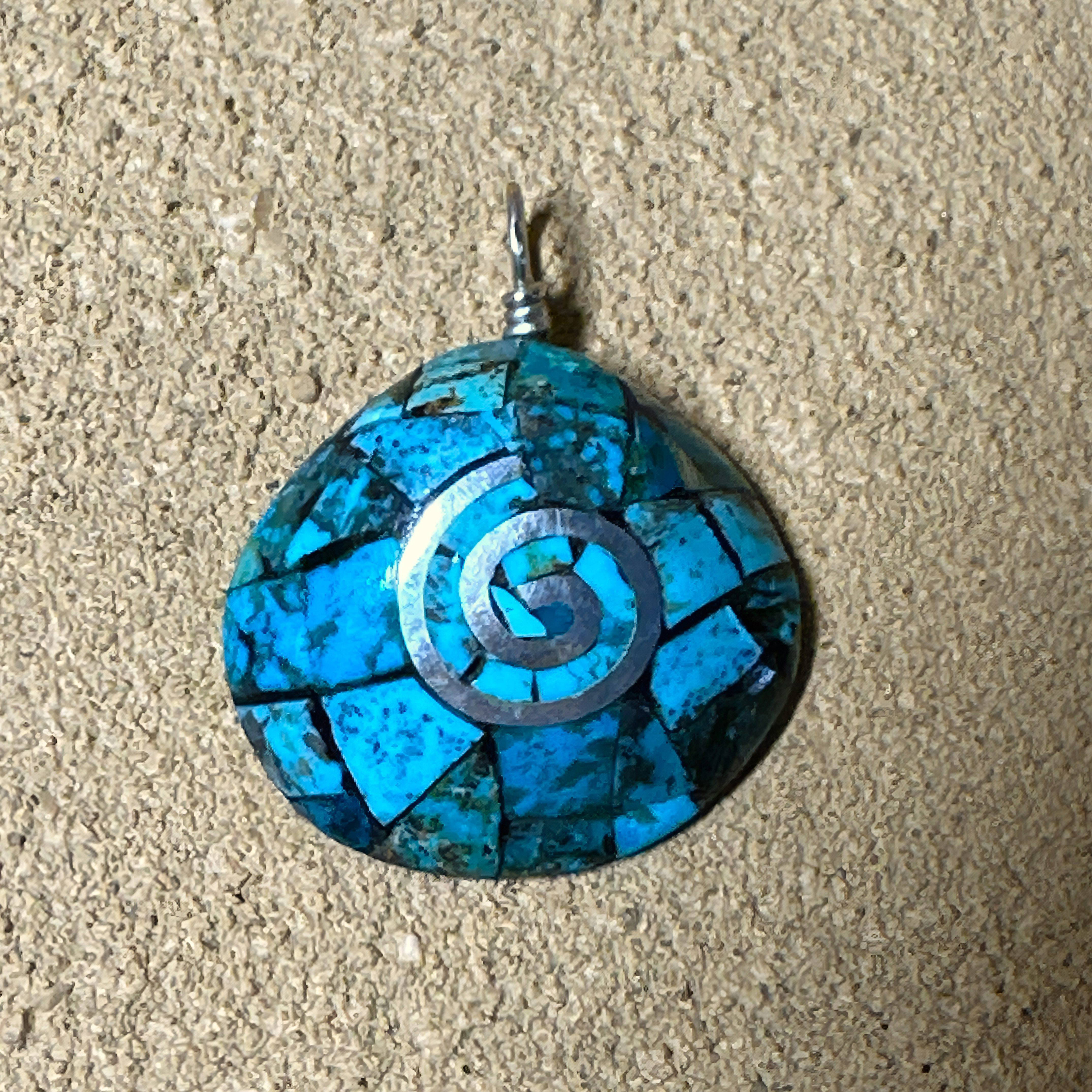 Turquoise Spiral Shell Mosaic Pendant By Ron Chavez 5.5g